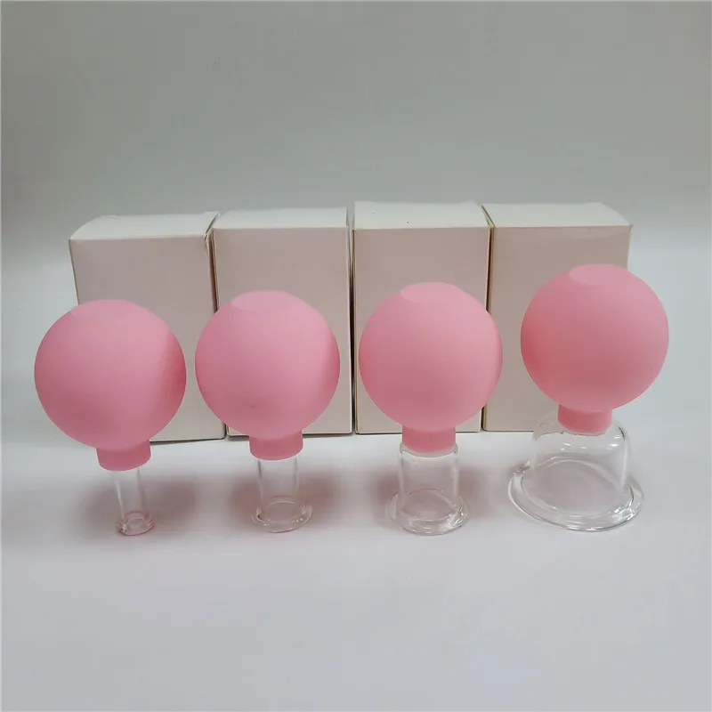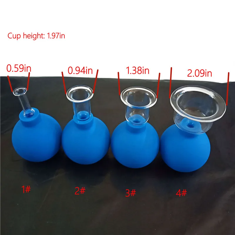4pcs Vacuum Cupping Cups Set Rubber Head Glass Anti Cellulite Massage Chinese Therapy Face Cupping Set Cans for Health Massage