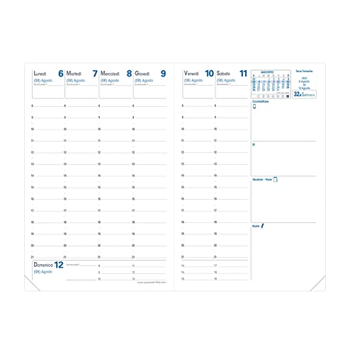 Agenda settimanale con presentazione della settimana su 2 pagine per avere una visione panoramica in un solo colpo d'occhio