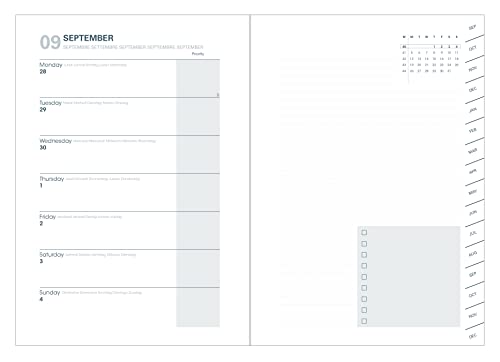 Per ogni pagina doppia include uno spazio libero per appuntare i tuoi promemoria (persone da contattare, cose da fare...)