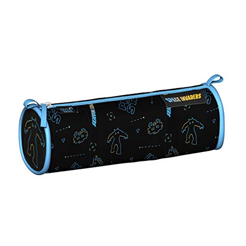 Quo Vadis - Collezione: Space invaders - TROUSSE TONDO SCOLARE - 1 ampio scomparto per penne, matite e pennarelli - Materiale e zip resistente - Formato 22x7x7 cm - Start