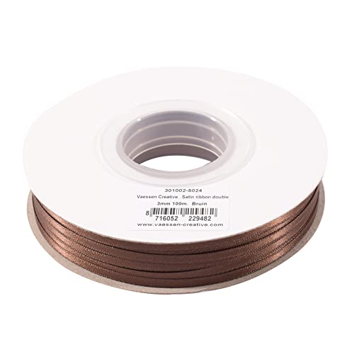 Vaessen Creative Nastro di raso, marrone, 3 mm x 100 m, per realizzare biglietti, scrapbooking, confezioni regalo e altri progetti artigianali