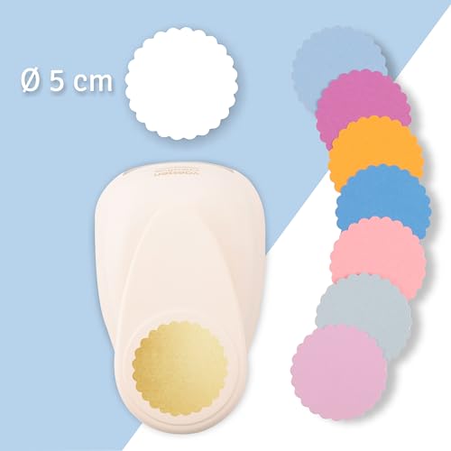 Vaessen Creative Perforatrice Cerchio Smerlato, Jumbo, XL, Grande Fustellatrice per Carta, per DIY Scrapbooking e Creazione di Biglietti