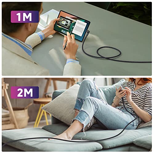VAFOTON Cavo Magnetico di Ricarica Rapida e Trasferimento Dati [2Pezzi, 1M+2M], 3 in 1 Design 540° Compatibile Micro USB, TipoC, I-Product per Personal computer