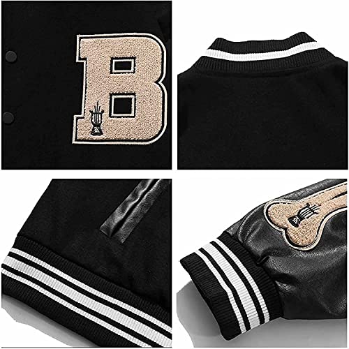 Vagbalena Uomo Varsity Giacca Da Baseball Giacca Dell'annata Della Stampa Della Lettera Bomber Giacca Moderna Outdoor Leggero Cotone di Modo Ricamato Giacca Con Tasche (black,XXL)