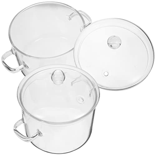 Vaguelly 2 pezzi Pentola in Vetro Borosilicato, Pentole Piccola Trasparente con Coperchio, Ø 19 cm, 1,9 litro Pentola per Cucinare, Doppia Maniglia, Pentola a Fuoco per Fornelli a Gas, Induzione