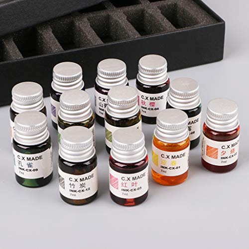 VAILANG 12Pieces Inchiostro Color Oro in Bottiglia colorato in Polvere Dip Ink Set Penna Scrittura stilografica Scatola Regalo Regalo 7ML Dip Pen Ink