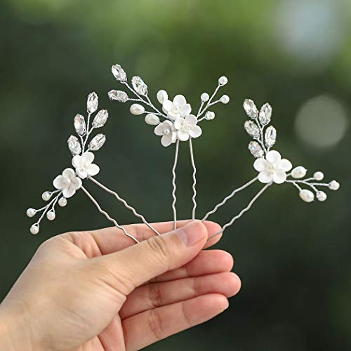 Vakkery Forcine per capelli da sposa con fiori Fermagli per capelli da sposa in argento con accessori per capelli da sposa in cristallo di perle per donne e ragazze (3 confezioni)