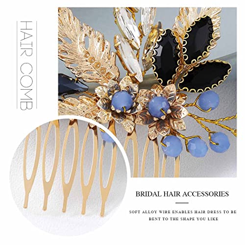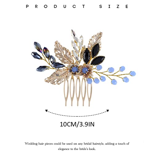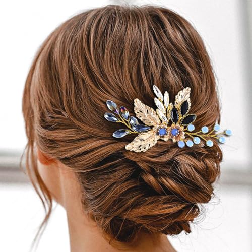 Vakkery Pettine per capelli da sposa con cristalli dorati, accessori per capelli da sposa per donne e ragazze