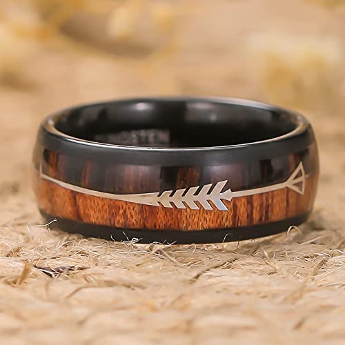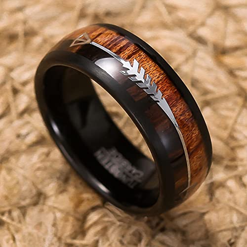 Vakki - Anello in legno di koa hawaiano, in carburo di tungsteno, con freccia in argento, 8 mm,vestibilità comoda, misure da 14,5 a 33