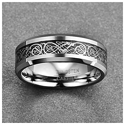 VAKKI Argento Anello Drago Celtico Uomo Tungsteno Anello Fibra Carbonio Nera Intarsiata 8mm Anello Dell'Amicizia Regali Per Amici Familiari Misura 29