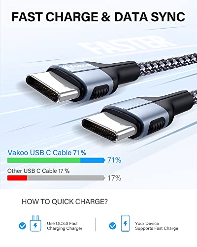 Vakoo Cavo USB C PD 60W 20V/3A Ricarica Rapida, Cavo USB C a USB C Compatible con MacBook PRO, MacBook Air 2020, iPad PRO/Air/Mini 2021, Galaxy S22 S21 S20 S10, Huawei, Xiaomi, Google, Oneplus - 2M