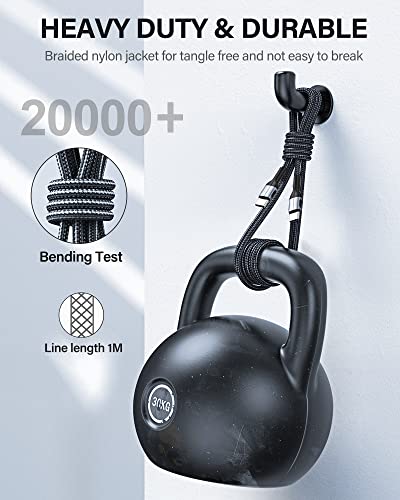 【Excellent Quality Materials, Strong Nylon-braided Cable】Strong nylon fibre, the most flexible, strength and durable Material, makes tensile force increased by 200%, can bear 8000+ bending test.The Premium Aluminum housing makes the cable more durable, And helps dissipate heat more effectively, Safe and Reliable.