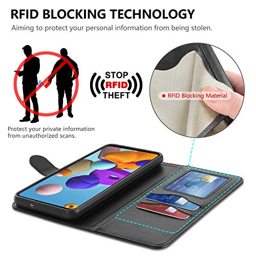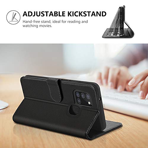 Vakoo Serie Wallet Cover per Samsung Galaxy A21s Custodia, con RFID Blocking, Nero