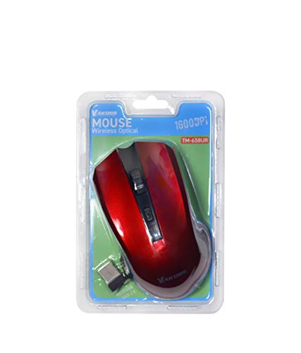 VAKOSS TM-658UR - Mouse ottico wireless 4D, 800/1200/1600 dpi, 2,4 GHz, colore: Rosso