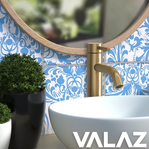 VALAZ Rubinetto a becco monocomando rotondo dorato spazzolato per lavabo con tubo curvo miscelatore acqua fredda e calda in ottone color oro opaco serie Jabalon...