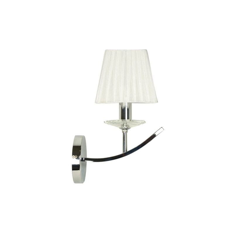 Materiale: base in acciaio, paralume in nastro di organza. Colore base: cromo, paralume bianco Altezza: 36. Larghezza: 15. Profondità: 22. Dimensioni (altezza/larghezza/profondità): 36x15x22 LED: No. Numero di sorgenti luminose: 1. Sorgente luminosa inclusa: No. Numero di sorgenti x maniglia: 1xE14