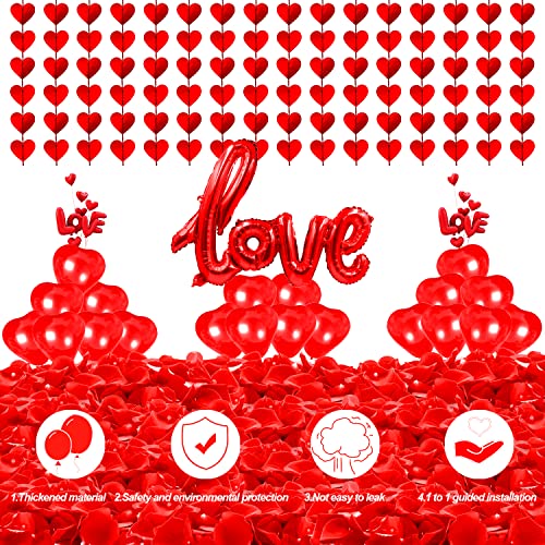 San Valentino Decorazioni Idee Kit LOVE XXL Palloncino2000 Pezzi Petali di Rosa Rossa 20 Pezzi Palloncini Cuore 6 Pezzi Ghirlanda Cuore