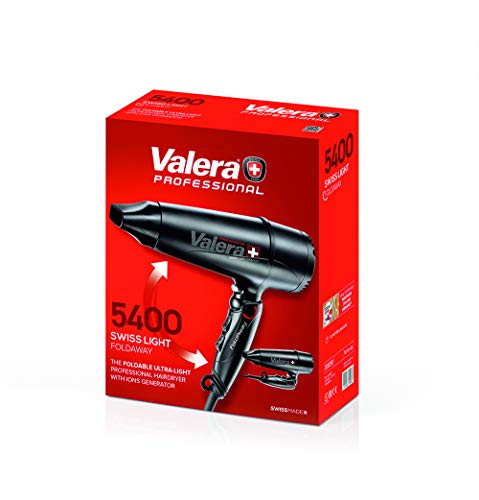 Valera Swiss Light Fold-Away 5400 Ionic, asciugacapelli professionale pieghevole e leggero, 2000 watt, Nero