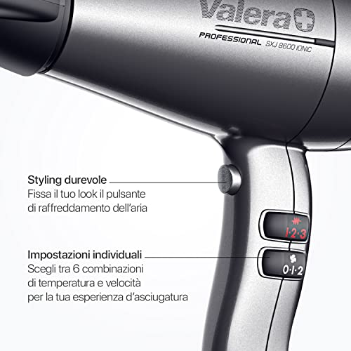 Valera Swiss Silent Jet 8600, asciugacapelli professionale con motore AC, phon asciugatura veloce e silenziosa, 2400 watt, Grigio