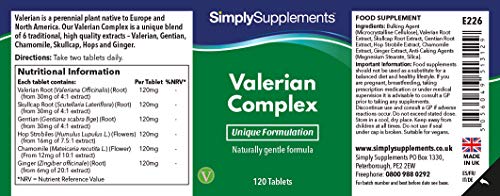 Valeriana Complex - 120 compresse - Adatto ai vegani - 2 mesi di durata - SimplySupplements