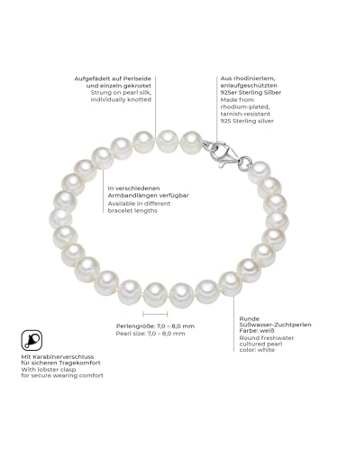 Valero Pearls Bracciale da Donna in Argento Sterling 925 con rodio con Perle coltivate d'acqua dolce bianco e 21 cm 60201420