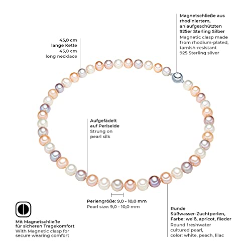 Valero Pearls Catena da Donna in Argento Sterling 925 con rodio con Perle coltivate d'acqua dolce bianco albicocche lila 00340320