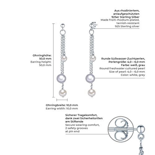 Valero Pearls Orechinni pendenti da Donna in Argento Sterling 925 con rodio con Perle coltivate d'acqua dolce bianco grigiore 60201341