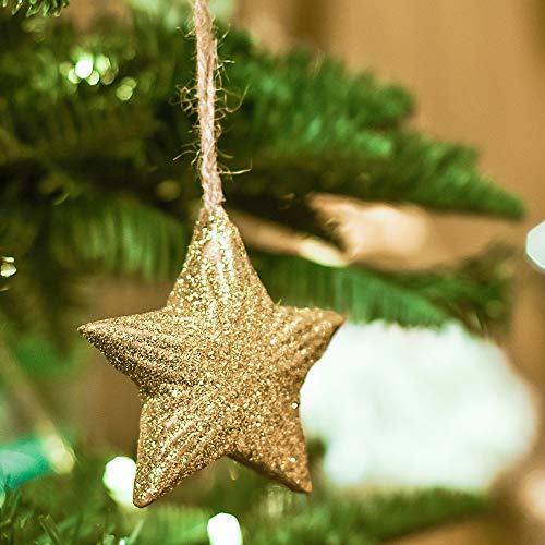 Valery Madelyn Decorazioni Natalizie Set di 6 Decorazioni da Appendere in Legno Cuore Stelle con Cavo di Iuta per Appendere Placcato Oro Scintillante Pendenti in Oro (Non includere la Scatola)
