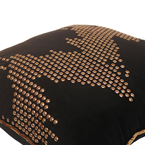 Valery Madelyn Luxury Gold Black Christmas Cushion Covers Decorative Canvas And Velvet Pillow Covers with Embroidery And Nailhead Studs Design (Set of 2, 45x45cm)