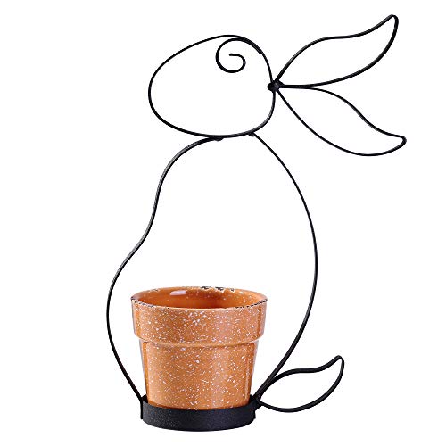 Valery Madelyn 22,5 cm Metallo Nero con Struttura a Forma di Coniglio e Vaso in Ceramica da Giardino/Decorazione Interna, Vaso Non inclusato in Vaso Giardino/Decorazione Interna, Impianto Non Incluso