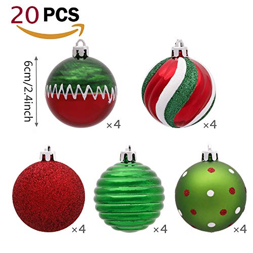 Valery Madelyn Palle di Natale 20 Pezzi 6 cm Palline di Natale, Collezione Classica Rosso Verde e Bianco Infrangibile Ornamenti Palla di Natale Decorazione per la Decorazione Dell'Albero di Natale