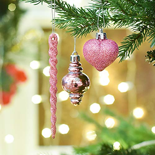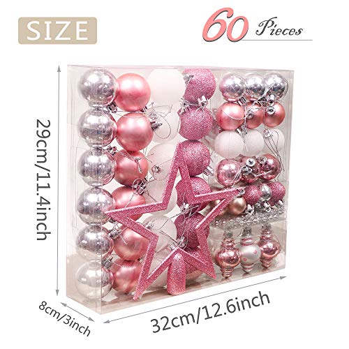 Valery Madelyn Palline di Natale 60 Pezzi 4-20cm Plastic Christmas Tree Baubles Beaded Necklace And Hanger Decorazioni di Natale Meraviglioso Mystery Theme Pink Silver Multiwrapping