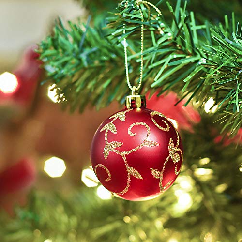 Valery Madelyn Palline di Natale 9 Pezzi 6Cm Palline di Natale in Plastica Decorazioni di Natale con Gancio Decorazioni per Albero di Natale Decorazione Natalizia Tema Oro Rosso