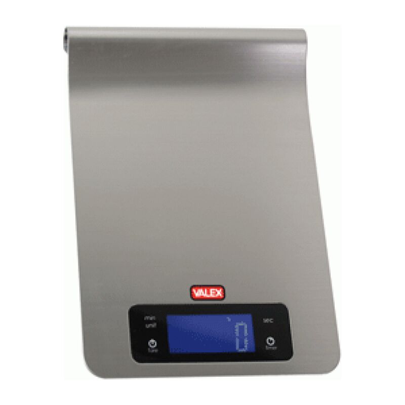 Bilancia elettronica inox appendibile Valex 1870019 dotata di funzione tara, timer, tasti touch, piano in acciaio inox. Caratteristiche Portata massima 5000g Divisione 1g Funzione tara Conversione grammo-once-libbre/once-millilitri Spegnimento automatico Piano in acciaio inox appendibile Timer Tasti touch Batterie non incluse.
