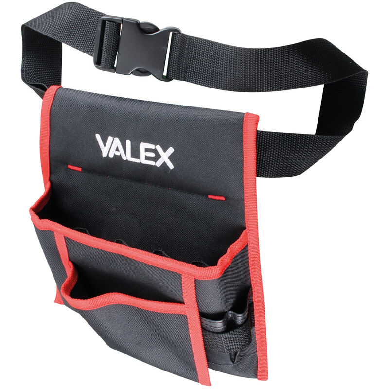 Con tasche portaoggetti e cinghia portamartello. Fibbia a sgancio rapido.