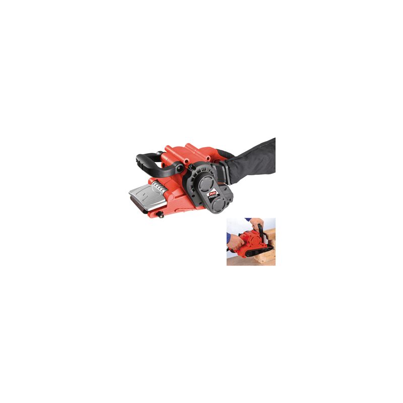 Levigatrice a nastro - Valex - Rullo anteriore ribassato con protezione mobile per levigature in zone difficilmente accessibili - Impugnatura anteriore regolabile. - Potenza W 800 - Blocco interruttore SI - Nastro mm 457x75 - Allineamento nastro MANUALE - Metri/min a vuoto 250 - Aspirazione polveri CON SACCHETTO - Peso netto kg 3