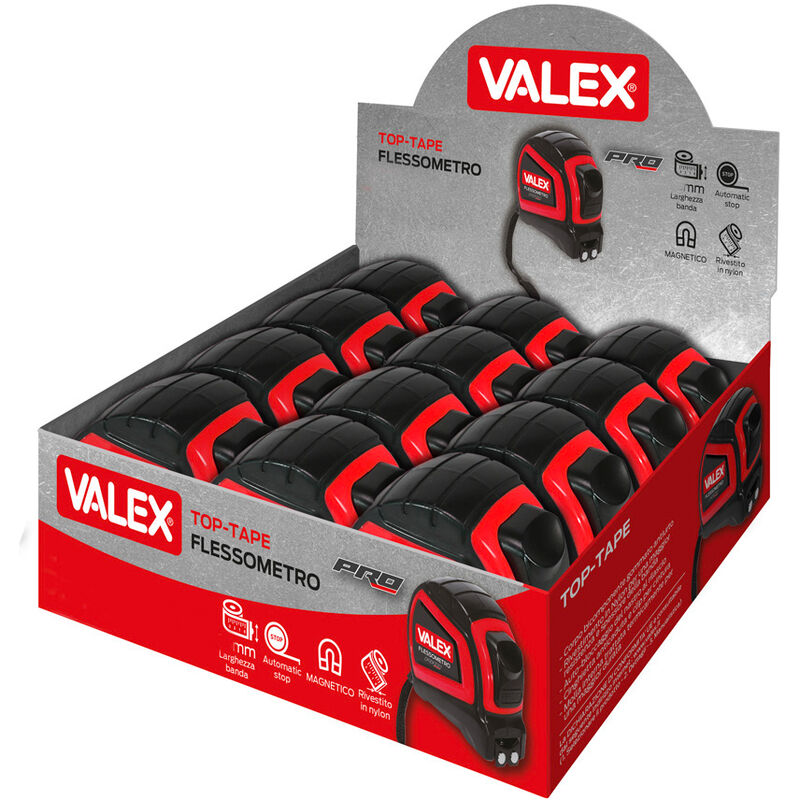 Nastro in acciaio con rivestimento in Nylon. Auto-bloccaggio del nastro al rilascio. Gancio magnetico. Cinghietta anticaduta e clip per cintura.