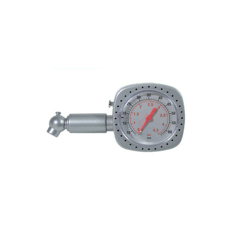 MISURATORE DI PRESSIONE VALEX Misuratore di pressione analogico VALEX per auto,moto ecc.Per utilizzarlo basta applicare il misuratore sulla valvola della gomma e controllare che lo strumento sia andato in pressione. Leggere la misura rilevata.Per azzerare lo strumento si deve premere il pulsante, ora il misuratore può effettuare una nuova misura. Unità di misurazione: psi,bar.