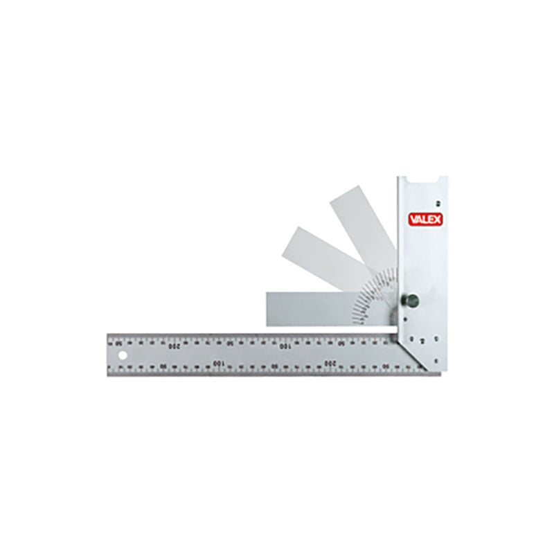 Squadra con goniometro VALEX 1800646 realizzata in alluminio da 300 mm con scala millimetrata su 1 lato. Caratteristiche tecniche delle lame VALEX 1800646 Lunghezza: 300 mm Lama millimetrata: su 1 lato