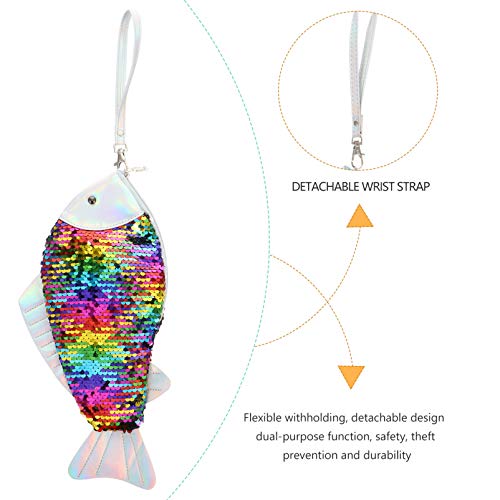 VALICLUD Astuccio Portapenne con Cerniera a Forma di Pesce Portamonete Flip Paillettes Borsa Cosmetica Borsa da Polso Glitterata