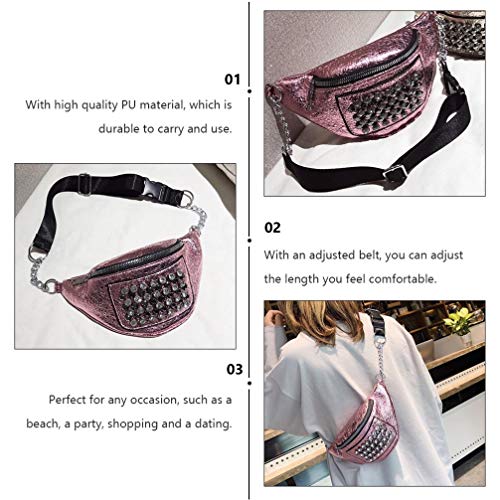 VALICLUD Borsa a Spalla Rivetto Marsupio in Pelle con Tracolla a Catena Borsa a Marsupio per Donna Ragazza (Rosa)
