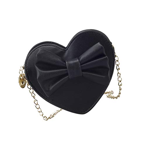 VALICLUD Moda Borsetta per bambini a forma di cuore Bowknot Crossbody Borse Borsa a tracolla in pelle PU ragazze borsa per i più piccoli Neonate (nero)