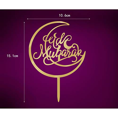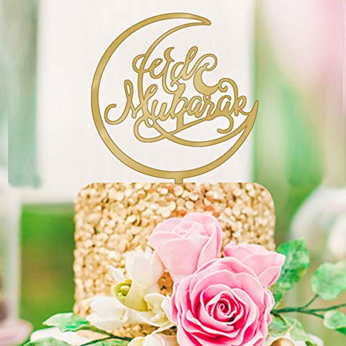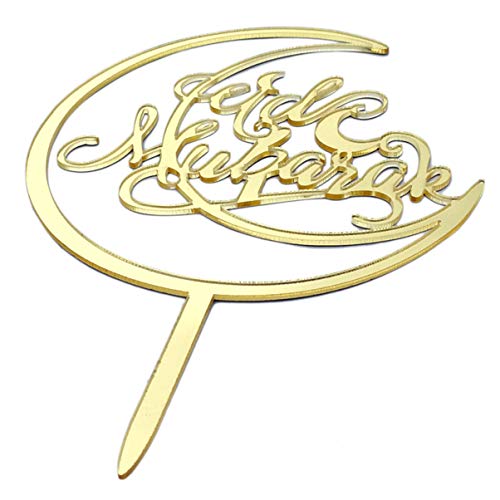 VALICLUD Eid Mubarak Topper per torte in acrilico con glitter ramadan Mubarak, topper per torte con scritta in lingua inglese "Glücklich Eid Party Decor per feste musulmane"