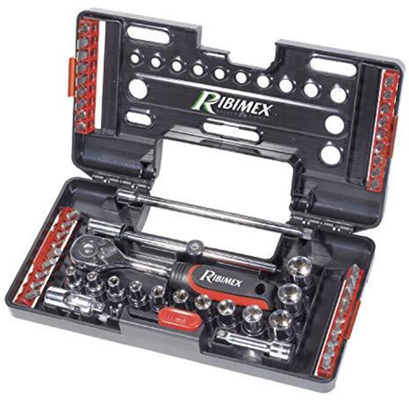 Un cofanetto molto pratico grazie alla sua chiusura di sicurezza. Per la viteria e bulloneria. Per una maggior robustezza tutti gli utensili sono realizzati in cromo vanadio (salvo gli inserti). Le chiavi a bussola sono esagonali per una maggior resistenza. Il cofanetto comprende 87 pezzi: - 1 chiave a cricchetto reversibile 1/4'' 45 denti - 12 chiavi a bussola - 1 snodo cardanico - 1 prolunga 50 mm - 1 prolunga 150 mm - 1 leva a T - 3 chiavi Allen: 1,5-2-2,5 mm - 1 porta inserti + 36 inserti 25 mm: 8 per viti a intaglio, 7 Phillips, 7 Pozidriv, 4 esagonali, 6 Torx, 4 quadrate