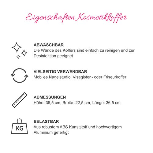 È estremamente spaziosa: in totale ci sono 2 ripiani e 4 scomparti allargabili che la rendono ideale per riporre al meglio tutti i vostri accessori. Gli 8 divisori modificabili consentono di personalizzare la disposizione dello scompartimento superiore in modo da tenere i vostri utensili ordinati e a portata di mano. Un grande scomparto inferiore garantisce spazio agli articoli più grandi come una lampada UV per la ricostruzione unghie, una fresa per unghie o un phon.