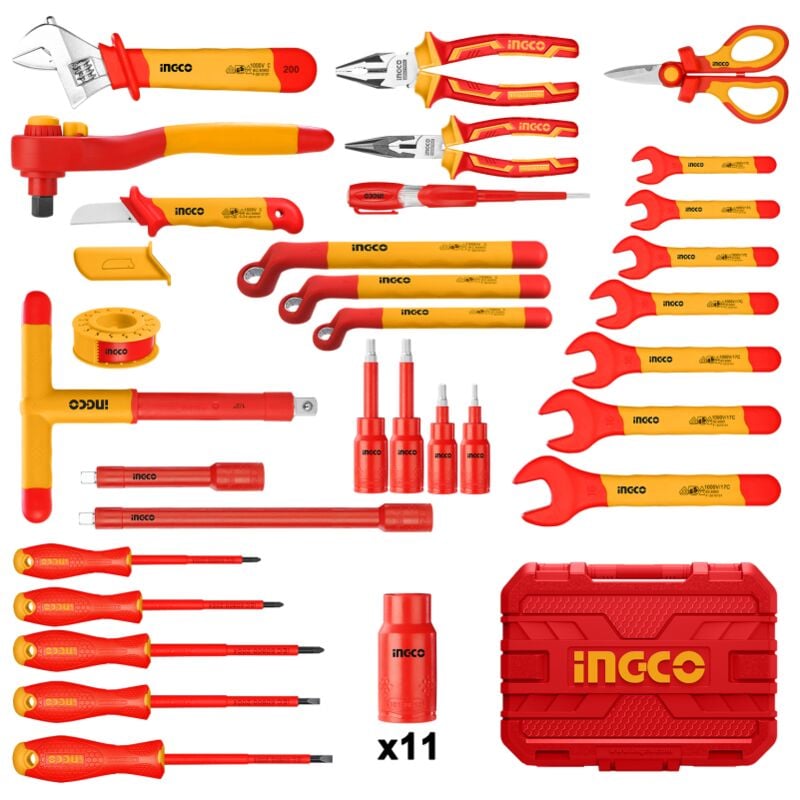 Set 26pezzi di utensili manuali isolati Certificazione 1000V, VDE/GS Include: 1 pinza combinata isolata da 180 mm;