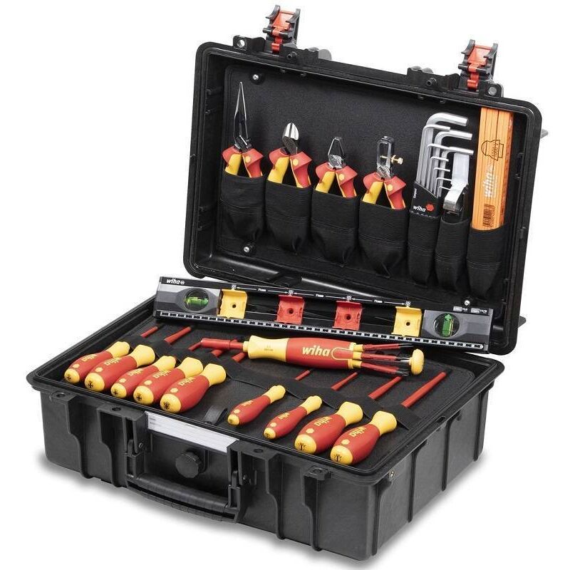 Caso di formazione · per impianti elettrici · attrezzatura di base ottimale per uso mobile · in una custodia protettiva robusta, resistente alla polvere e impermeabile (IP67) con valvola di compensazione della pressione · spazio di archiviazione aggiuntivo per minutere e macchine · Possibilità di marcatura individuale con targhetta con il nome Altre caratteristiche tecniche: · Larghezza: 392mm · Peso: 6,6kg · Materiale: Polipropilene · Profondità: 185mm · Altezza: 485mm. Contenuto: 34 pezzi, Design: custodia protettiva, Marchio: WIHA. Contenuto: 34 pezzi, Design: custodia protettiva, Marchio: WIHA. Contenuto: 34 pezzi, Versione: Custodia protettiva, Marca: WIHA