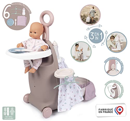 Smoby Toys - Trolley per bambole Baby Nurse per bambini - Valigia per bambole arrotolabile con zona notte e pranzo pieghevole per bambole fino a 42 cm - a partire dai 18 mesi