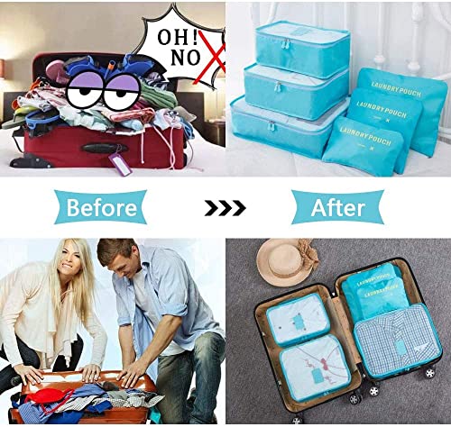 Valigia organizer da 7 pezzi a forma di cubo, organizer da viaggio, organizer da viaggio, borsa per bag-All valigia, organizer multifunzione impermeabile (Blu)