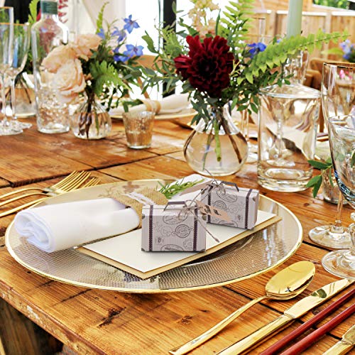 CONFEZIONE DA 50: La nostra confezione di Bomboniere Vintage a forma di valigia per nozze ne contiene 50, ed include dello spago pretagliato per fissare delle targhette sulle tue scatole portaconfetti. Sono così facili da montare e saranno perfette.